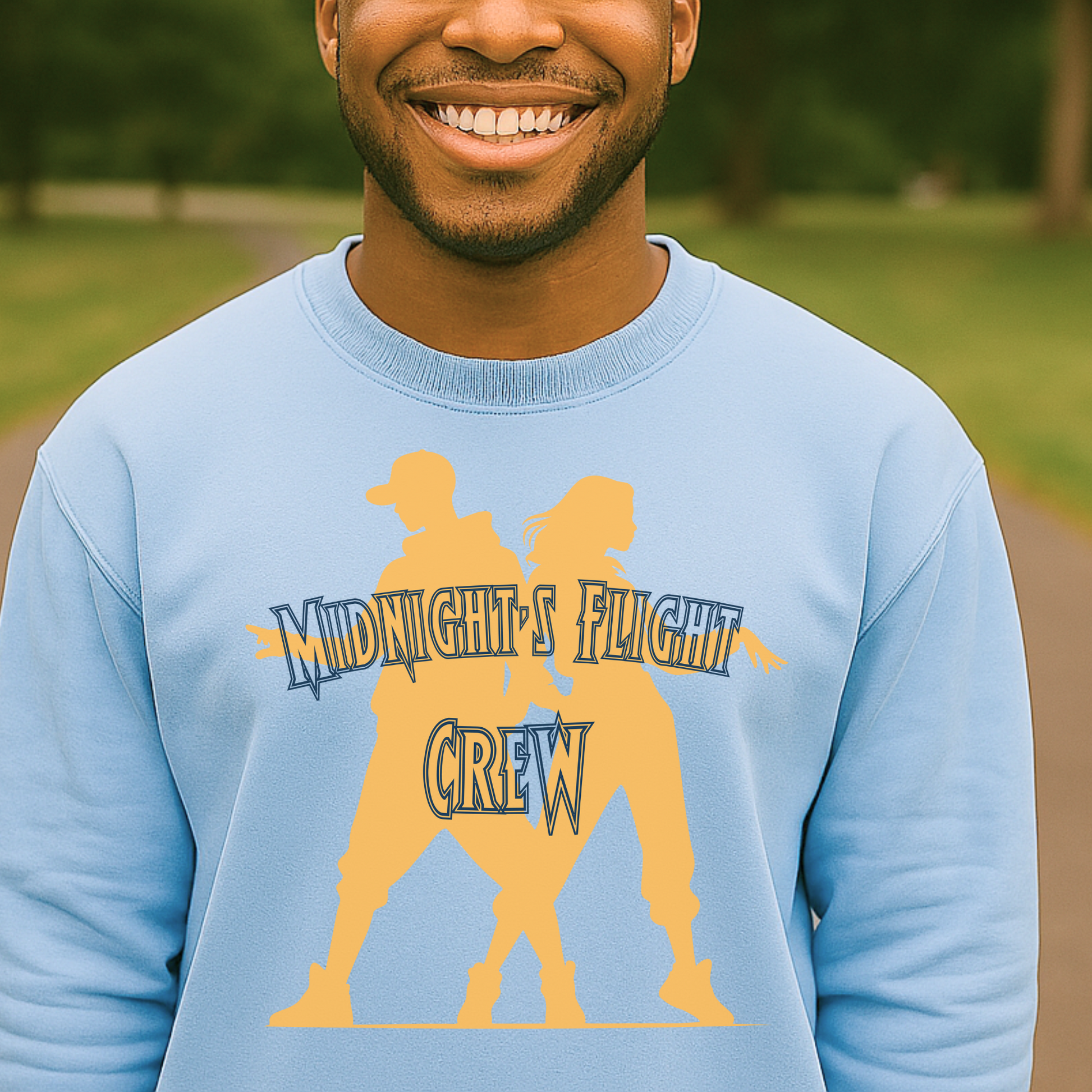 - Golden silhouette design with Midnight’s Flight Crew lettering